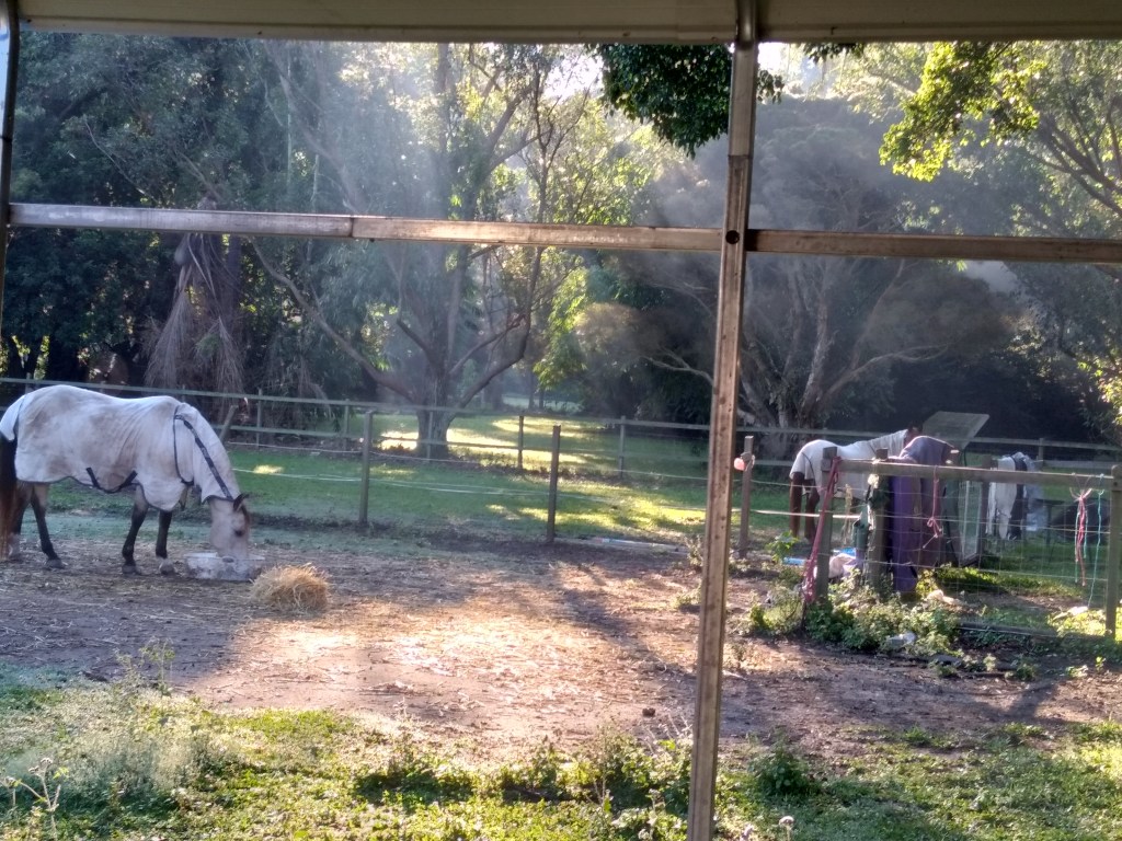 A friend of mine rented a room in a house at Worongary, and suggested the property as it had a few rooms available. It was further from work than I preferred to be, but my only option at such short notice. I moved into the granny flat behind the main house, where I had one other roommate, a young French jockey whom we’ll call D. It was a peaceful setting- Worongary is a semi-rural suburb, with many acreage properties. I’d wake to the sound of kookaburras, cockatoos, magpies, and whipbirds. My new landlord L owned racehorses, and often kept them in the yard behind the houses.