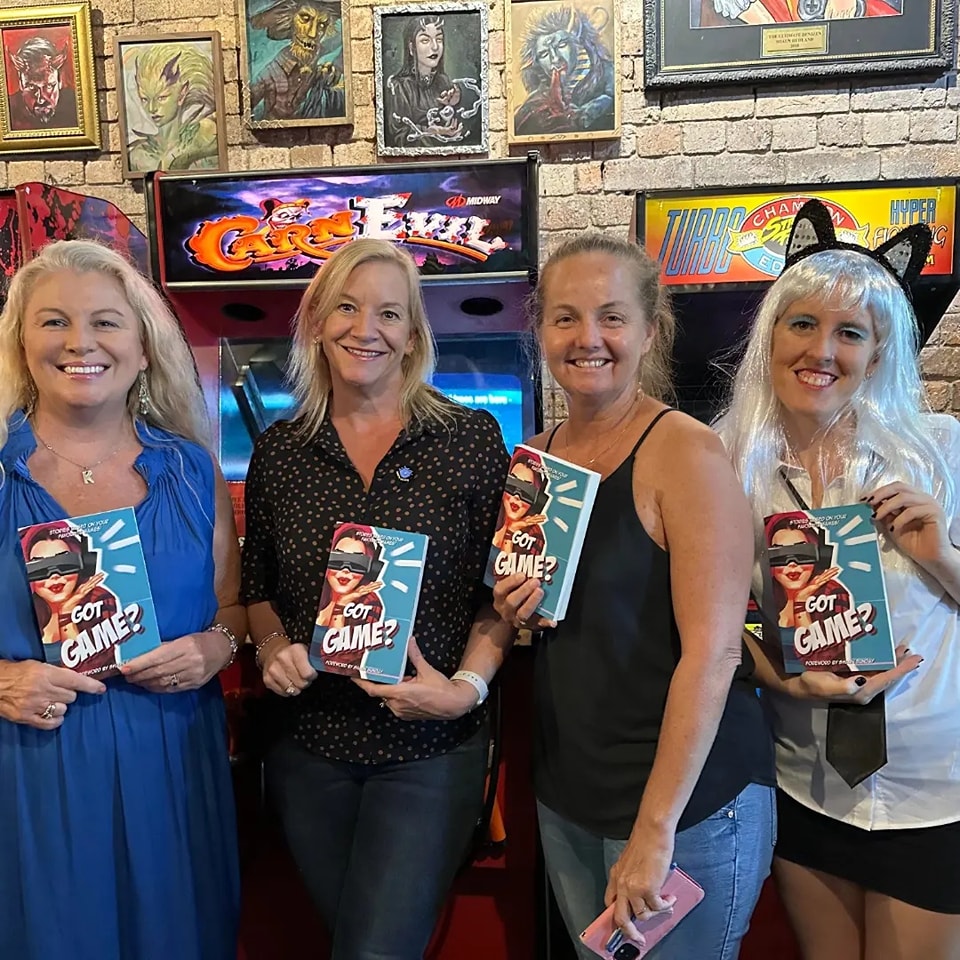 On August 24th 2022, a very special moment occured on a very special night. Myself and my fellow writer Christine Betts were hosting our first Write & Sip fundraising event for Gold Coast Writers’ Association at Whisky Lounge Mudgeeraba. Our writing comrades Kellie and Selena were also in attendance. During the evening, we learned that we had all been selected to be published in the 2022 Rainforest Writing Retreat anthology Got Game?. I couldn’t imagine receiving this wonderful news in a better way, with us all together.