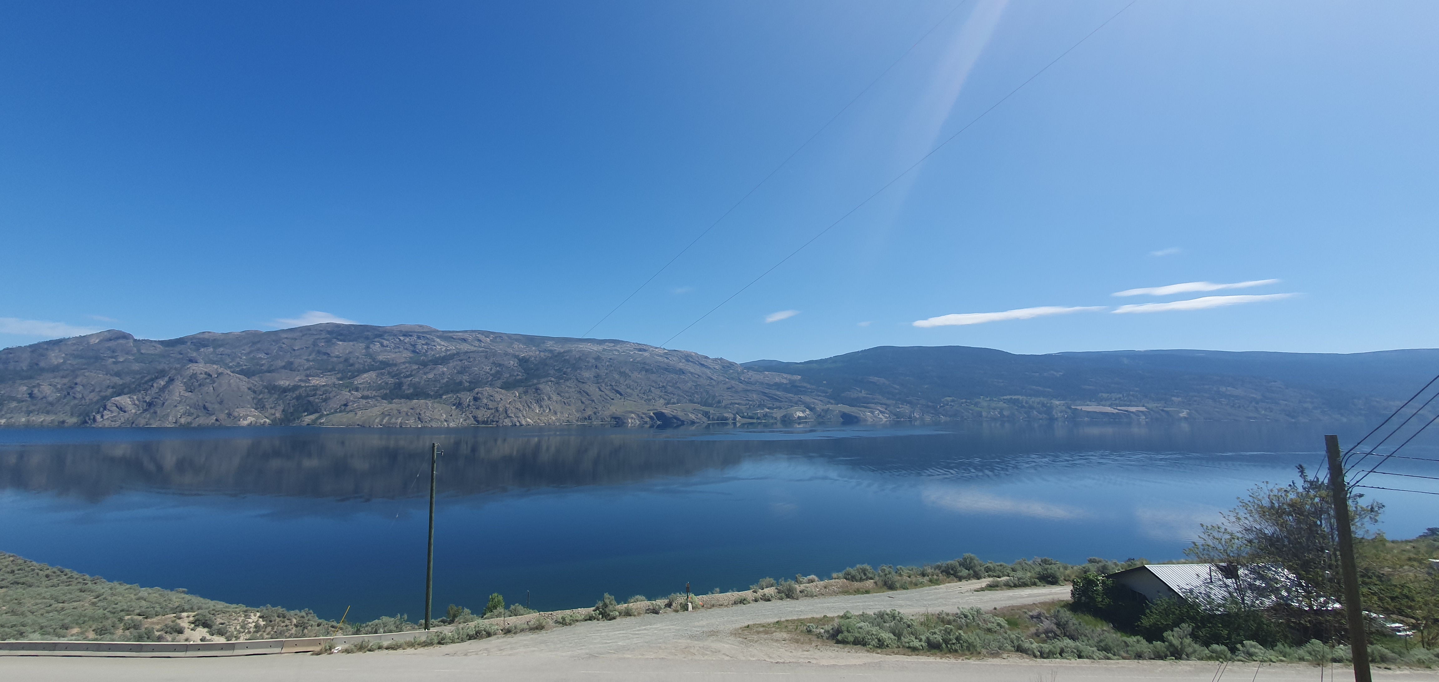 We were held up on the scenic Highway 97 in Summerland for half an hour, queued in stopped traffic while rock blasting work was undertaken. There was nothing we could do but wait, so I took the opportunity to get out of the car and take some photos of beautiful Lake Okanagan.