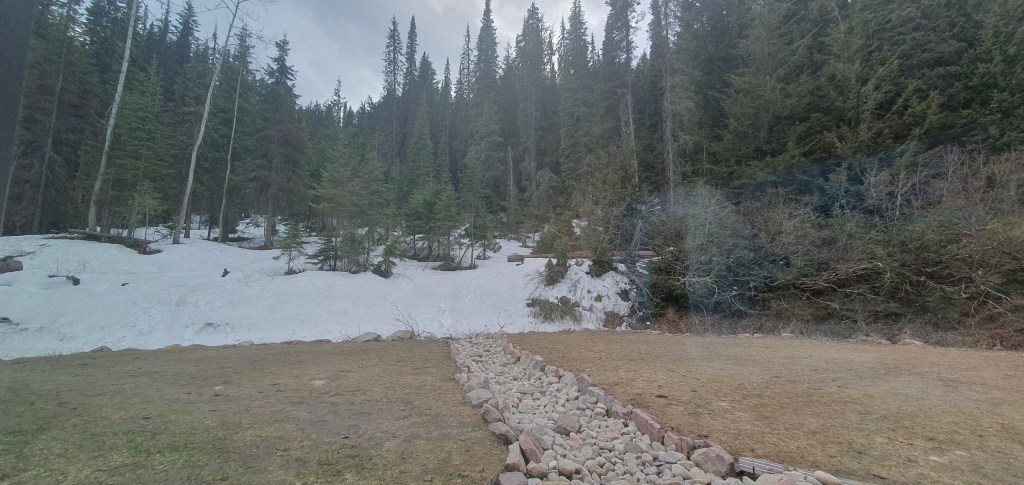 We were delayed briefly by a routine road closure at Roger’s Pass, a precautionary measure against avalanches. It was an opportunity for us to get out of the car, breathe in the fresh mountain air and have a look around.