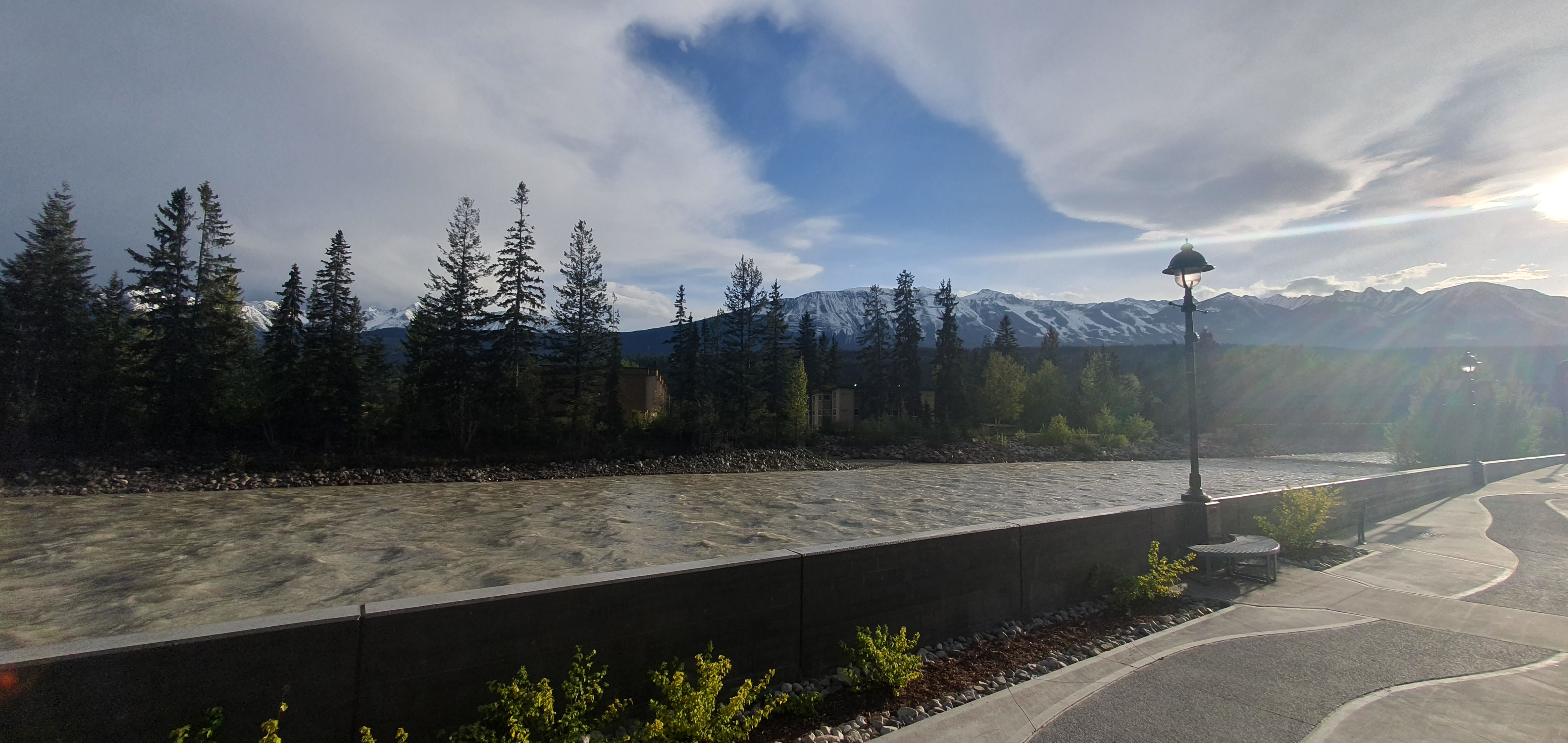 We noticed some cars moving through the road closure, and we sprinted back to Janine’s car to join the queue. We did not want to miss the opportunity to get through if it was going to be a small window. We were on our way again much sooner than expected. We stopped for dinner at Rockwater Bar and Grill in the town of Golden, where I tried my first poutine, a traditional Canadian dish originated in Montreal, consisting of French fries and cheese curds topped with a brown gravy. Not sure how my stomach would respond-or react- to such a heavy meal, I had been planning the timing of my first poutine mindfully. I thoroughly enjoyed it- the portion size was perfect, and the cheese curds added a unique texture and taste to the typical bowl of fries.