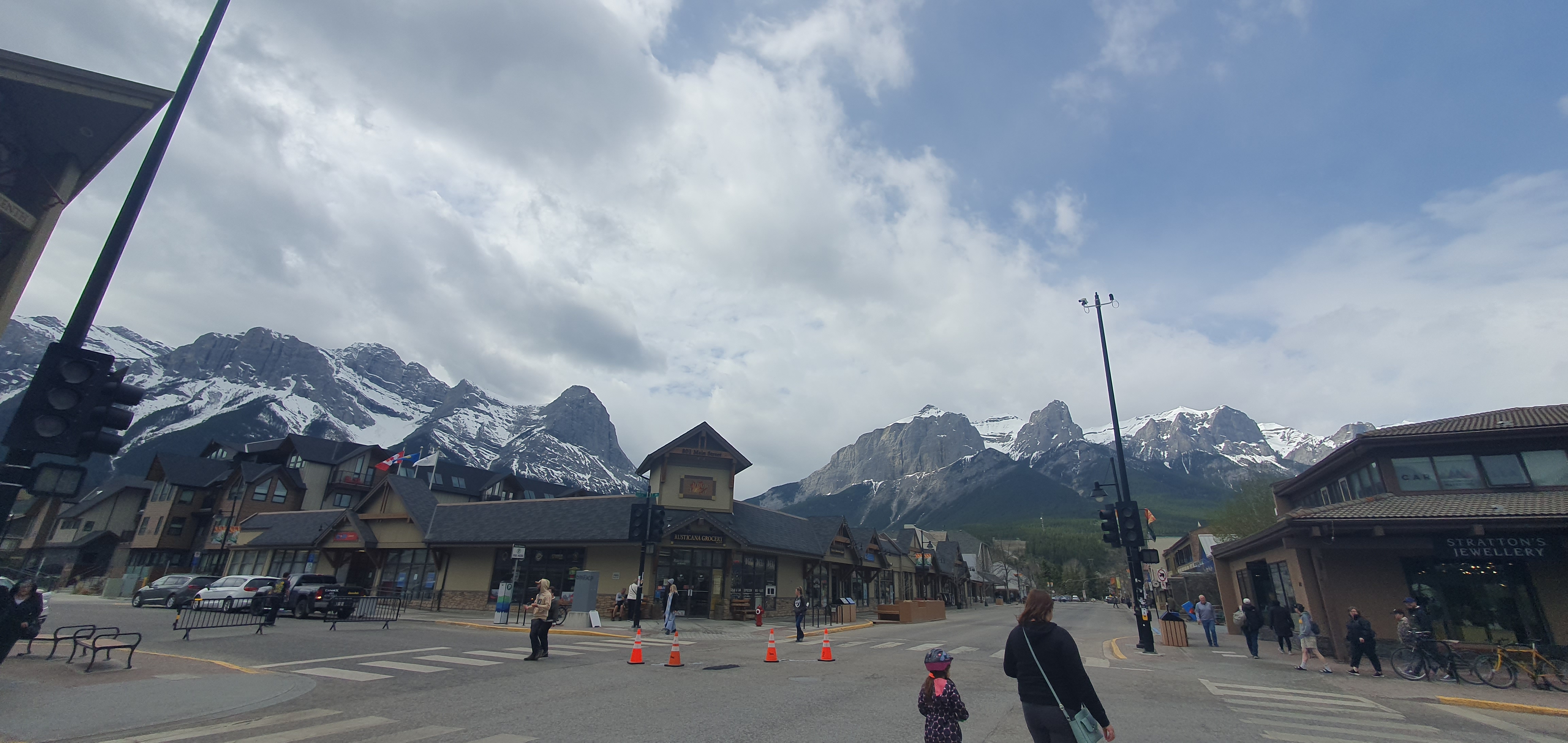 We took a stroll down Main Street, which is completely closed off to cars. Behind the quaint stores and restaurants was the spectacular vistas of the surrounding Canadian Rocky Mountains. so close that you could almost reach out and touch them.