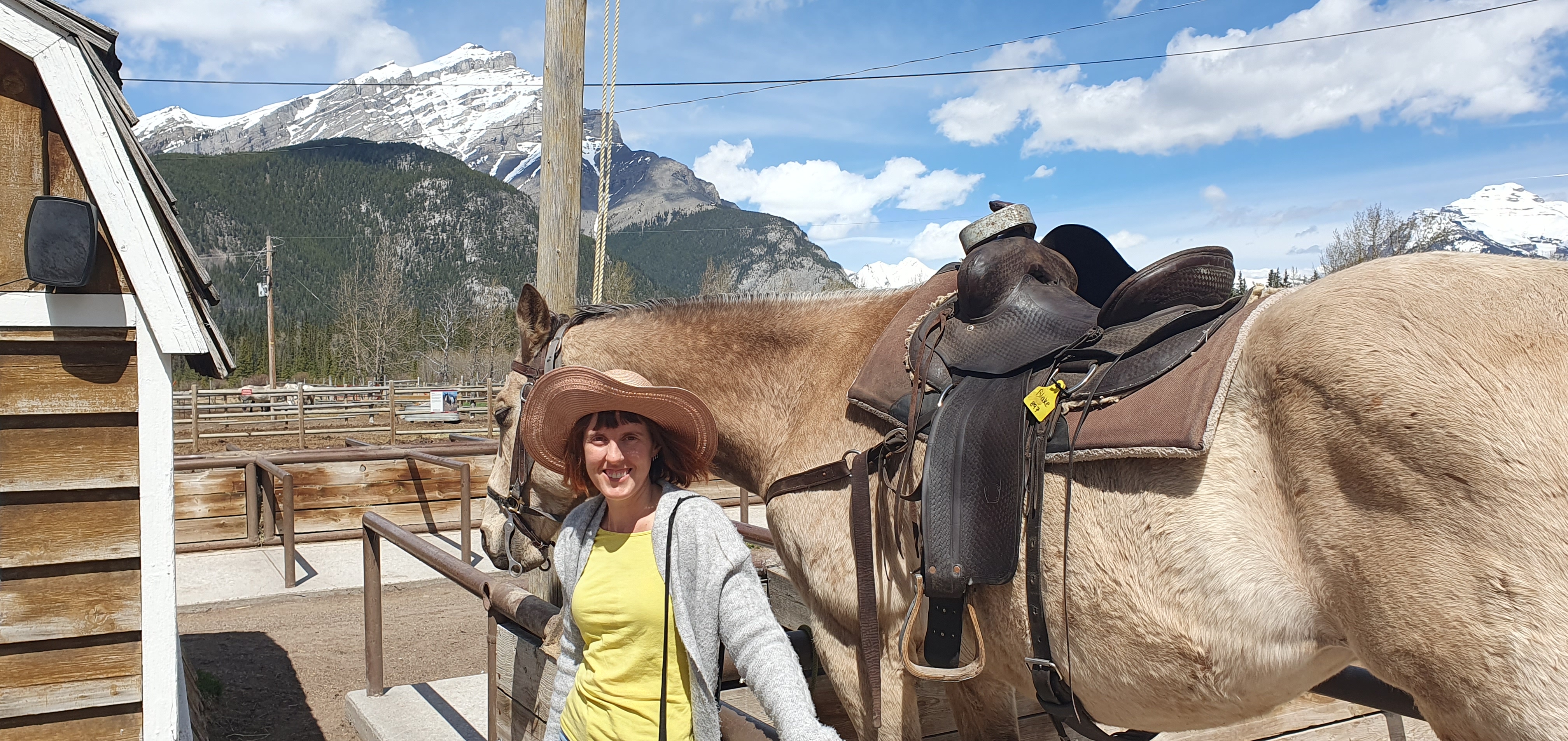 Our next stop was a surprise for Maddie, a twenty minute trail ride on a pony at Banff Trail Riders. She was a natural as she rode proudly in her saddle as she was led around the trail. Meanwhile, I made a friend.