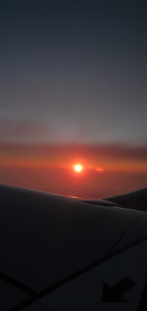 Finally we departed at 11.45pm. I had taken two 2.5ml gummies I had bought on the Sunshine Coast, but I was too wired and tired to sleep at first. It did mean I was awake to see the magnificent colours of the sunrise. I managed a nap toward the end of the almost five-hour flight.