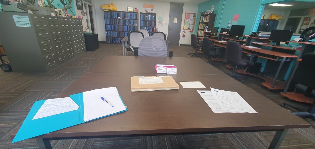 The purpose of my trip to St. John’s was to conduct research for Parasomnia, a story I was working on about the Old Hag, a local superstition associated with sleep paralysis. That afternoon, I had a research appointment at the Memorial University of Newfoundland Folklore and Language Archive, or MUNFLA for short. I had contacted the staff ahead of time, and they had kindly sent me a list of records they had about the Old Hag, which they had pulled and laid out ready for me. I spent two hours pouring through the records, taking notes and photographs.
