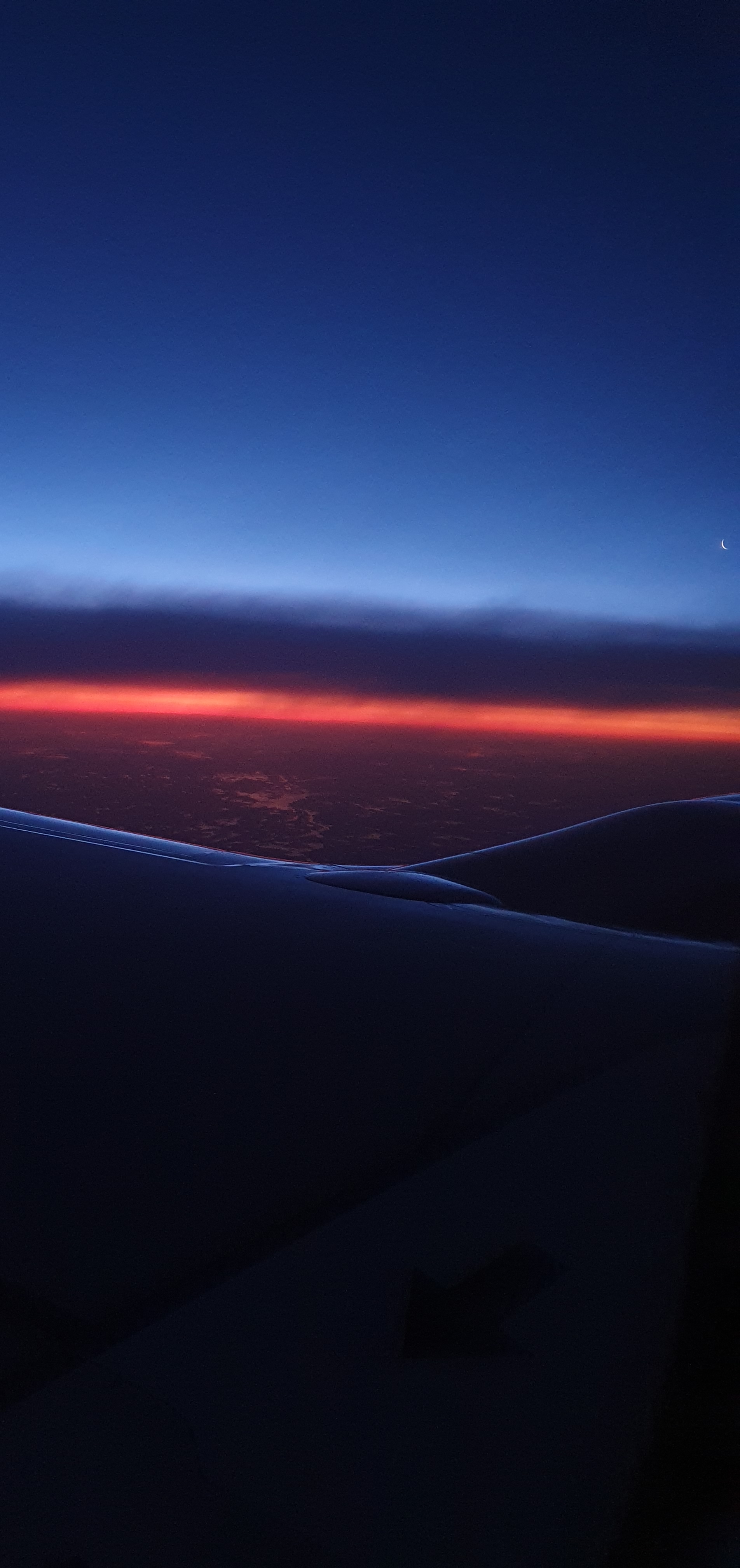 Finally we departed at 11.45pm. I had taken two 2.5ml gummies I had bought on the Sunshine Coast, but I was too wired and tired to sleep at first. It did mean I was awake to see the magnificent colours of the sunrise. I managed a nap toward the end of the almost five-hour flight.
