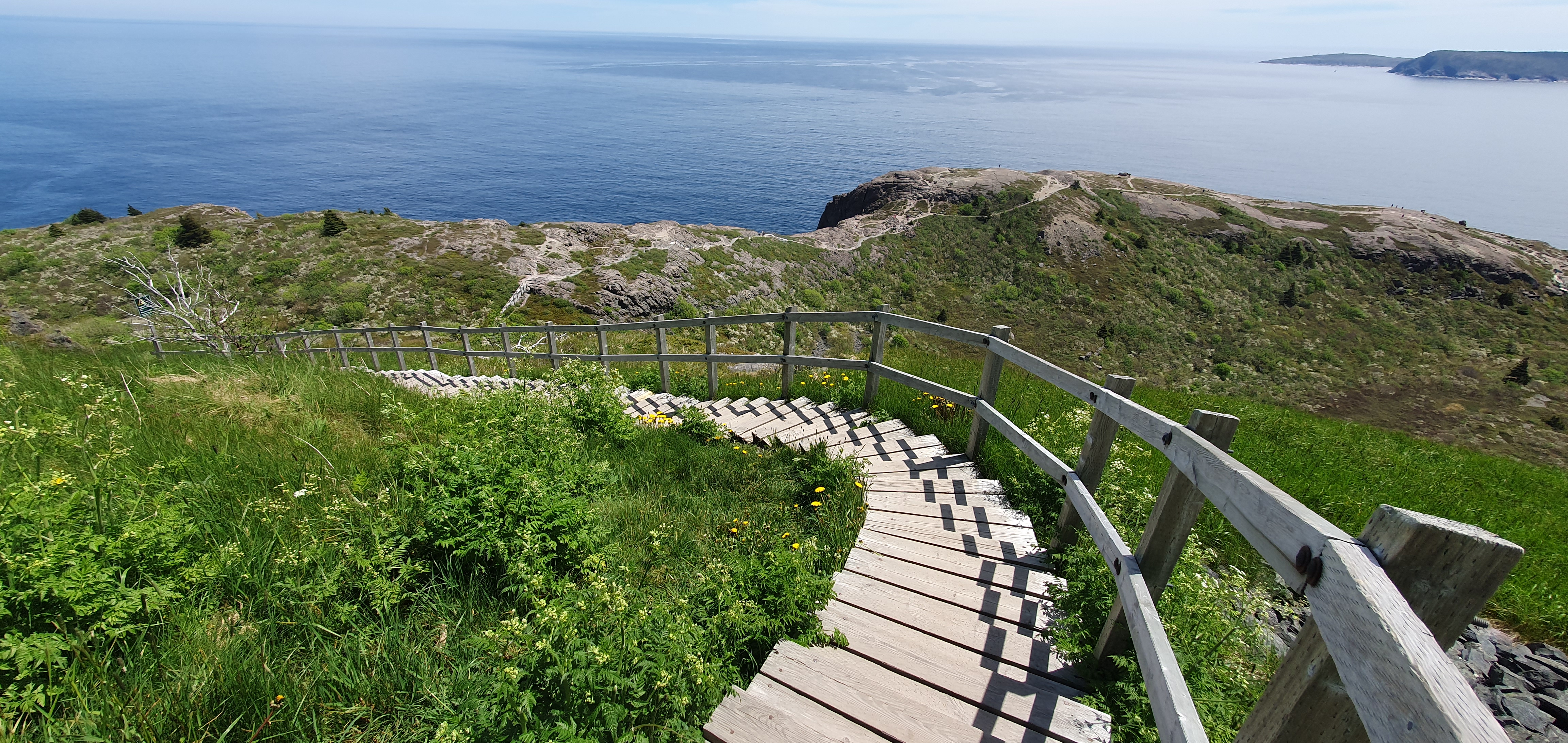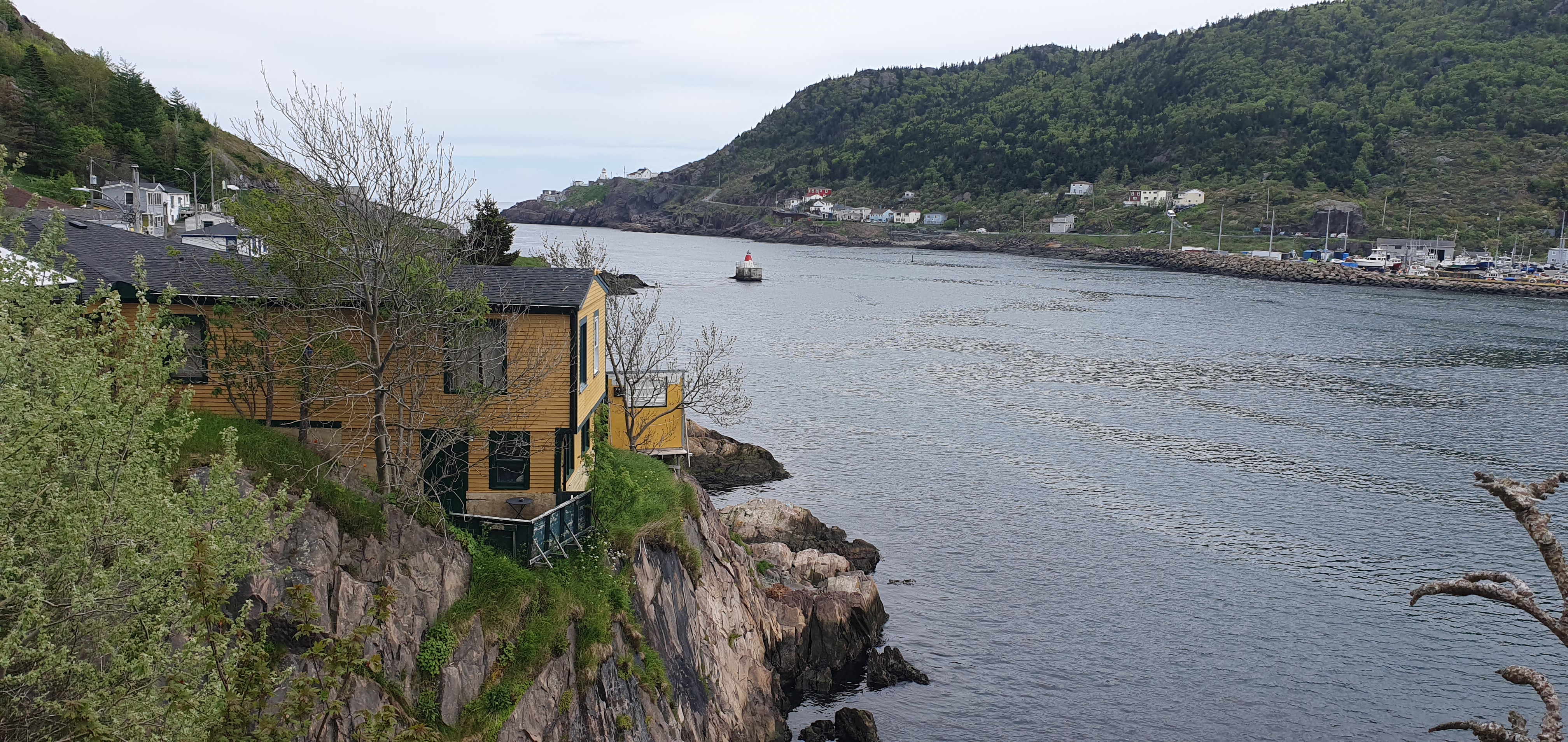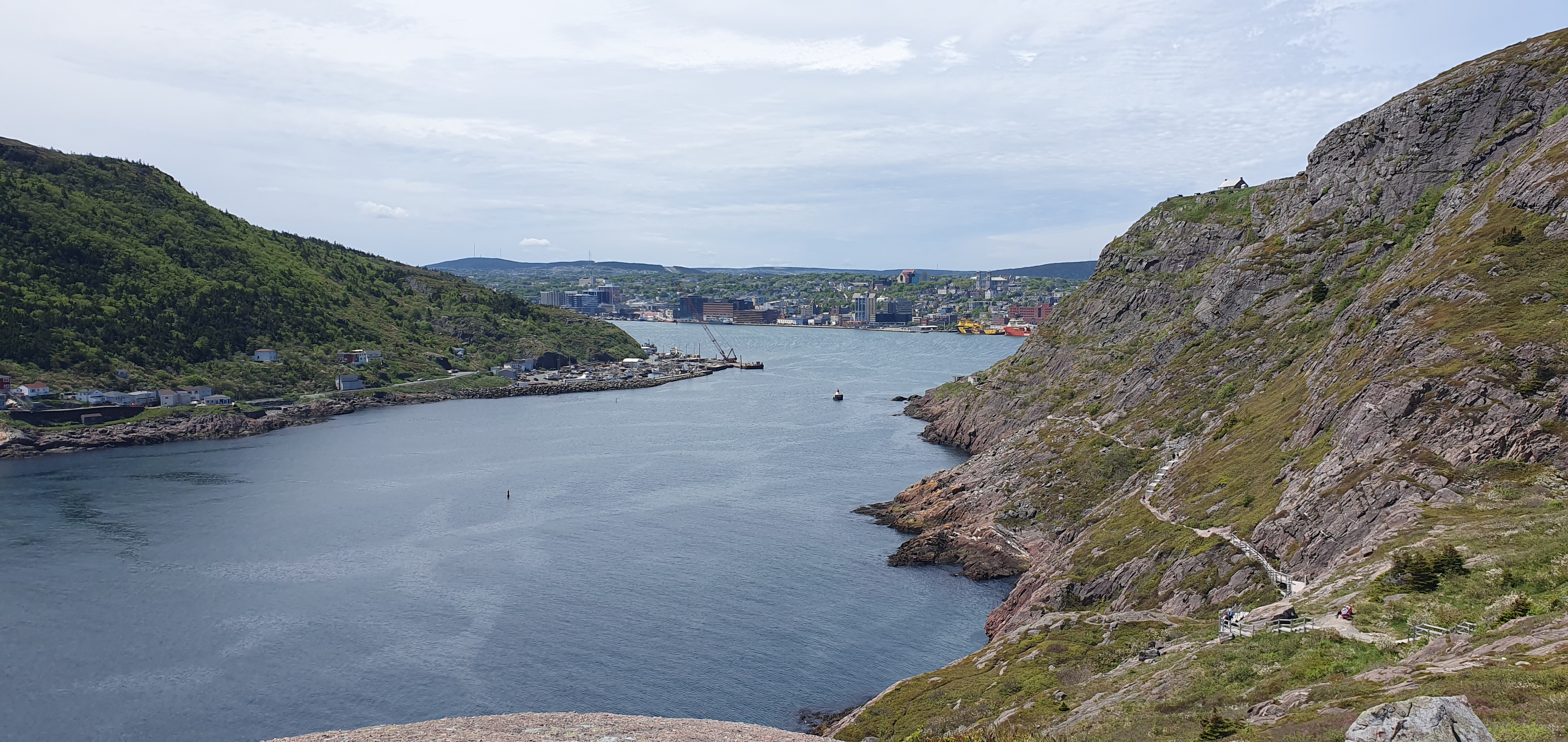 I started the steep descent along the hiking trail leading from Cabot Tower to the Battery neighbourhood below. The weather came over cloudy, and I was glad I brought my jacket after all.