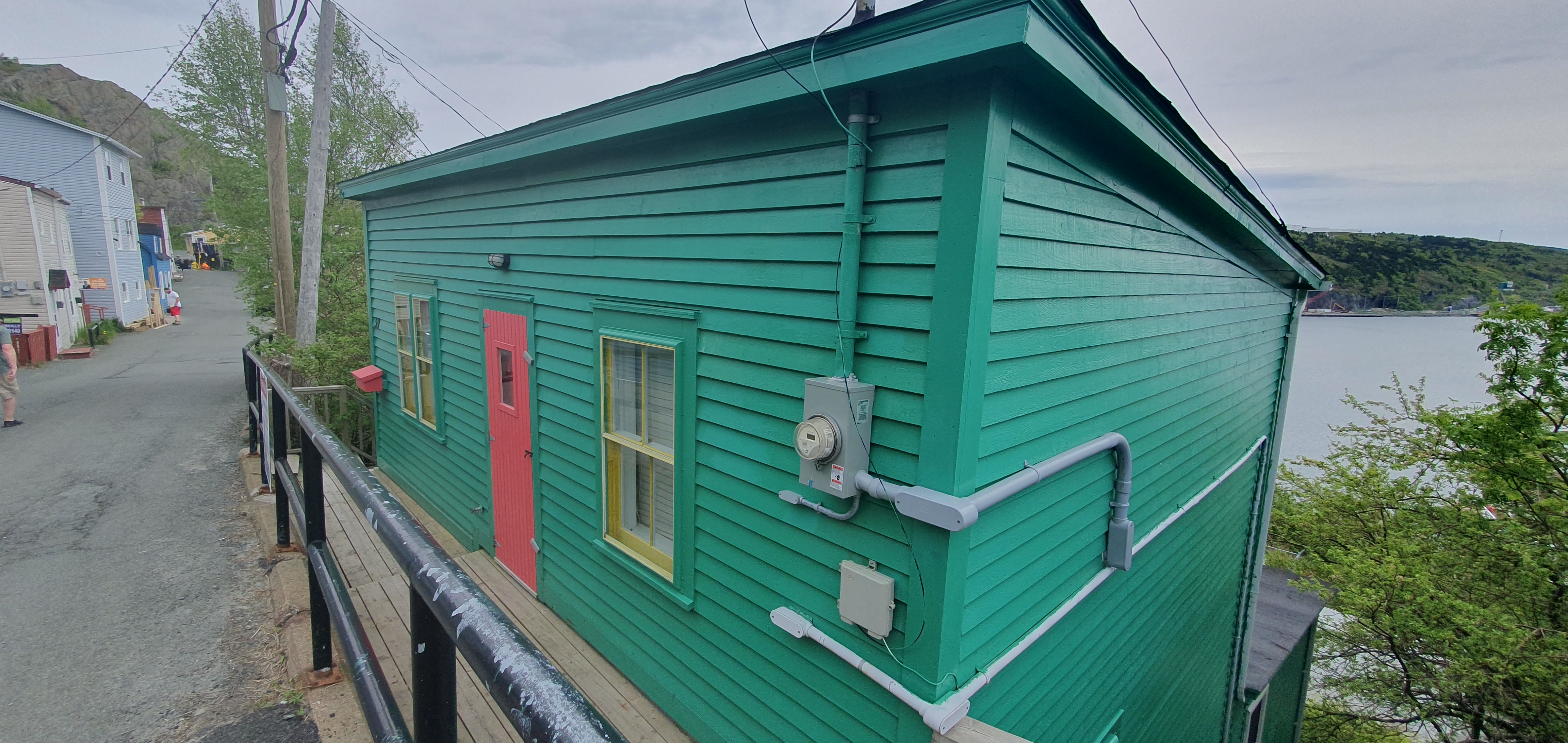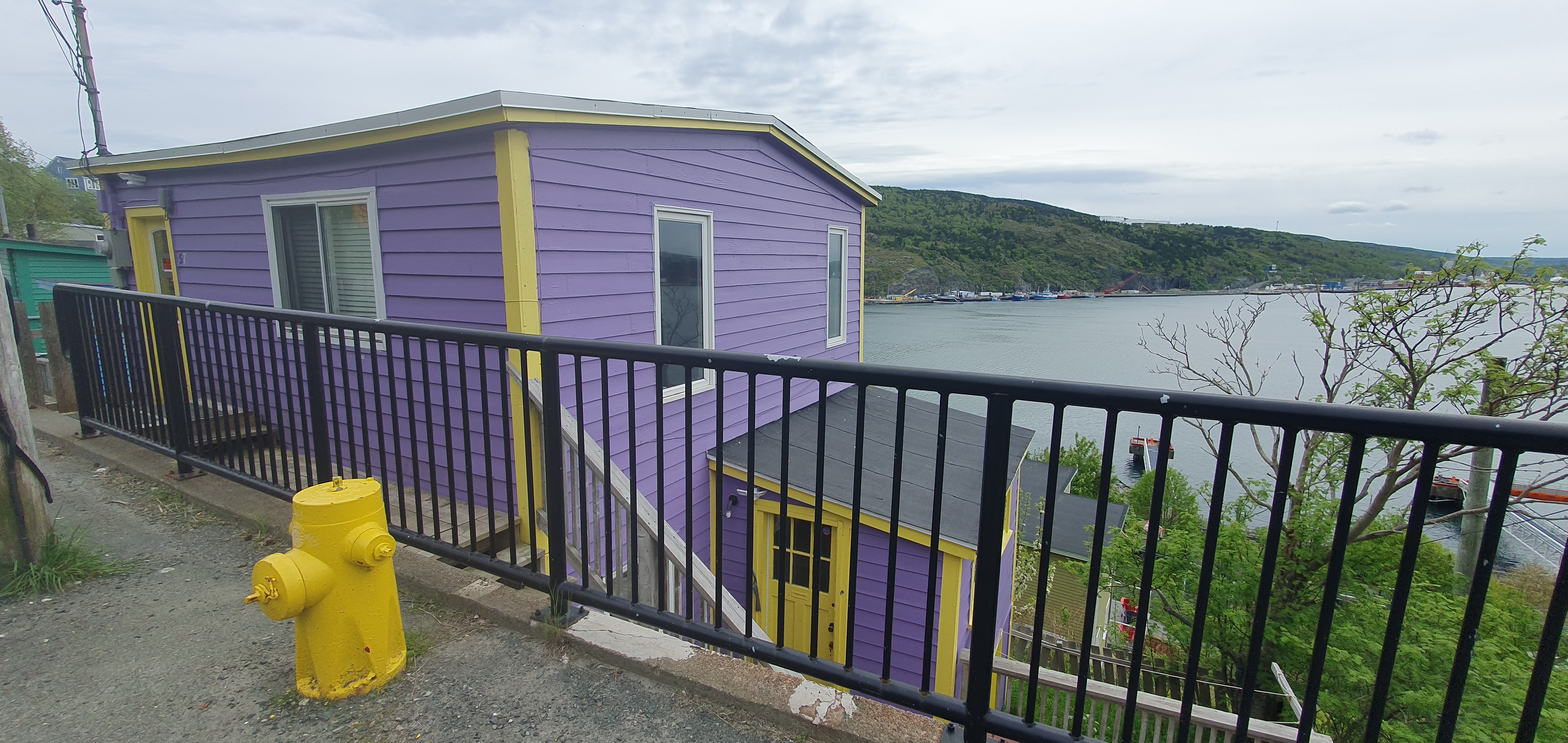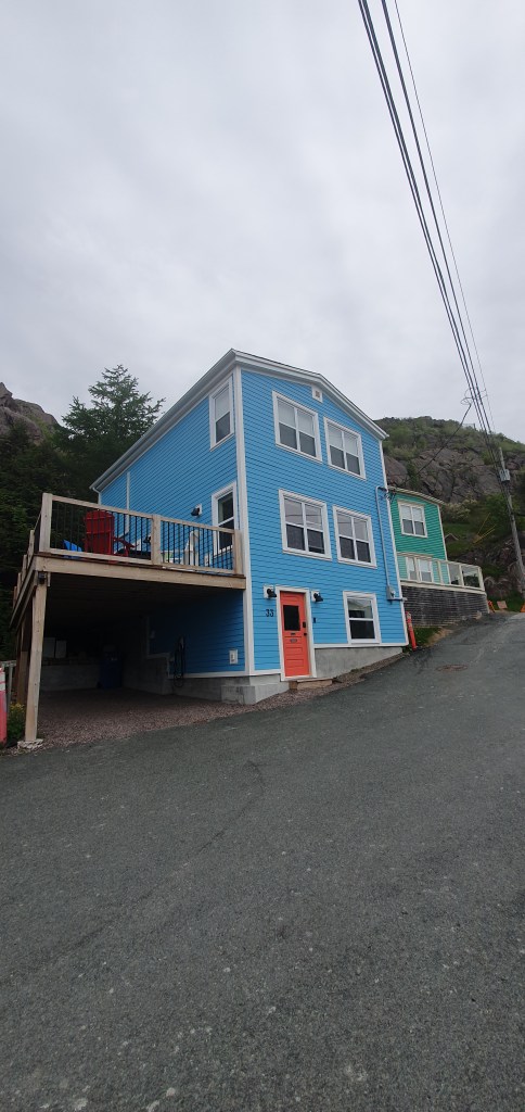 The hiking trail naturally ended at the entrance to The Battery, a neighbourhood of colourful fishing shacks perched on the escarpment below Signal Hill. Some shacks were older, some were newer builds, all in the same style. It would seem, if you want to live in Downtown St. John’s, you have no choice but to live in a brightly coloured house.