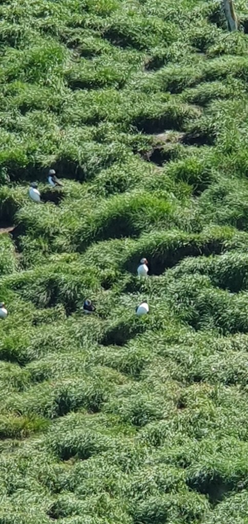 I could not have asked for better conditions on the day, with clear blue skies and smooth seas. As we approached the picturesque Witless Bay Ecological Reserve, puffins could be seen at a distance bobbing on the water, flying just above the surface (yes, flying) and nestled in the grassy nooks of the islands in their hundreds. We were also treated to a sighting of humpback whales.