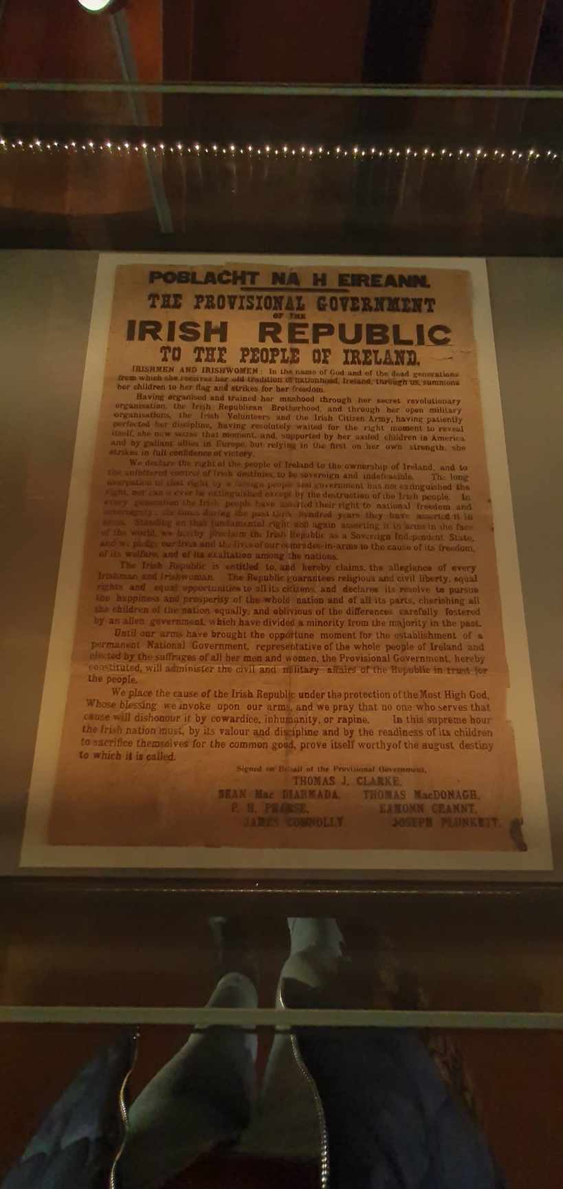 One of the many treasures in the Long Room is one of the few remaining copies of the 1916 Proclamation of the Irish Republic which was read outside the General Post Office on 24 April 1916 by Patrick Pearse at the start of the Easter Rising.