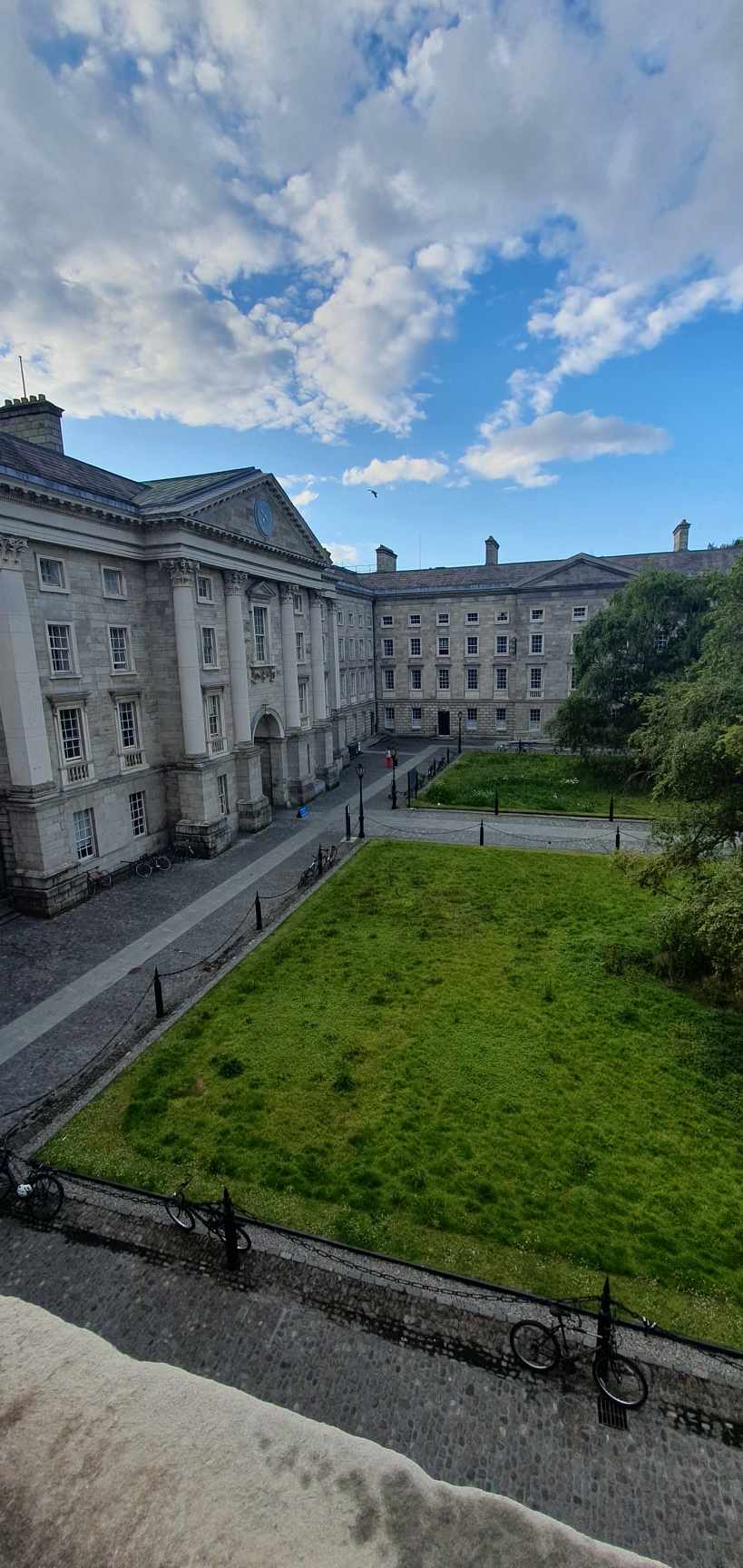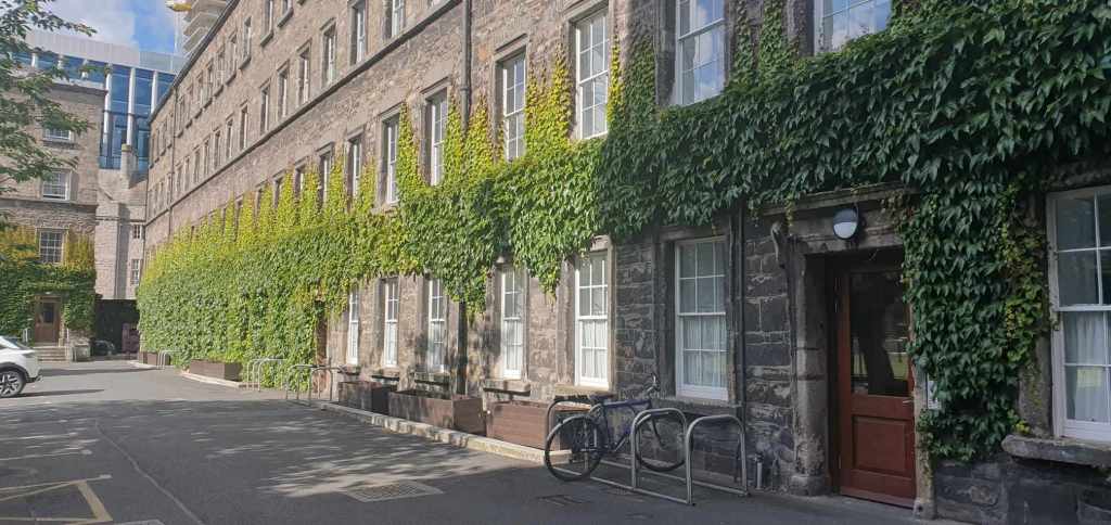 I decided this was not satisfactory and returned to the accommodation office. I felt like Mrs. Richards from the Fawlty Towers episode ‘Communication Problems’, but I had spent a lot of money on my stay at Trinity College, and I was scared I wasn’t going to enjoy it. The staff reallocated me to a ground-floor room. I had made changes to my booking before my arrival, the ground floor request had somehow disappeared from the booking notes with the change. This new room was right next to the busy road outside, with trams clanging and pedestrian signals beeping. My view this time was of a bike shed and an unkempt courtyard.