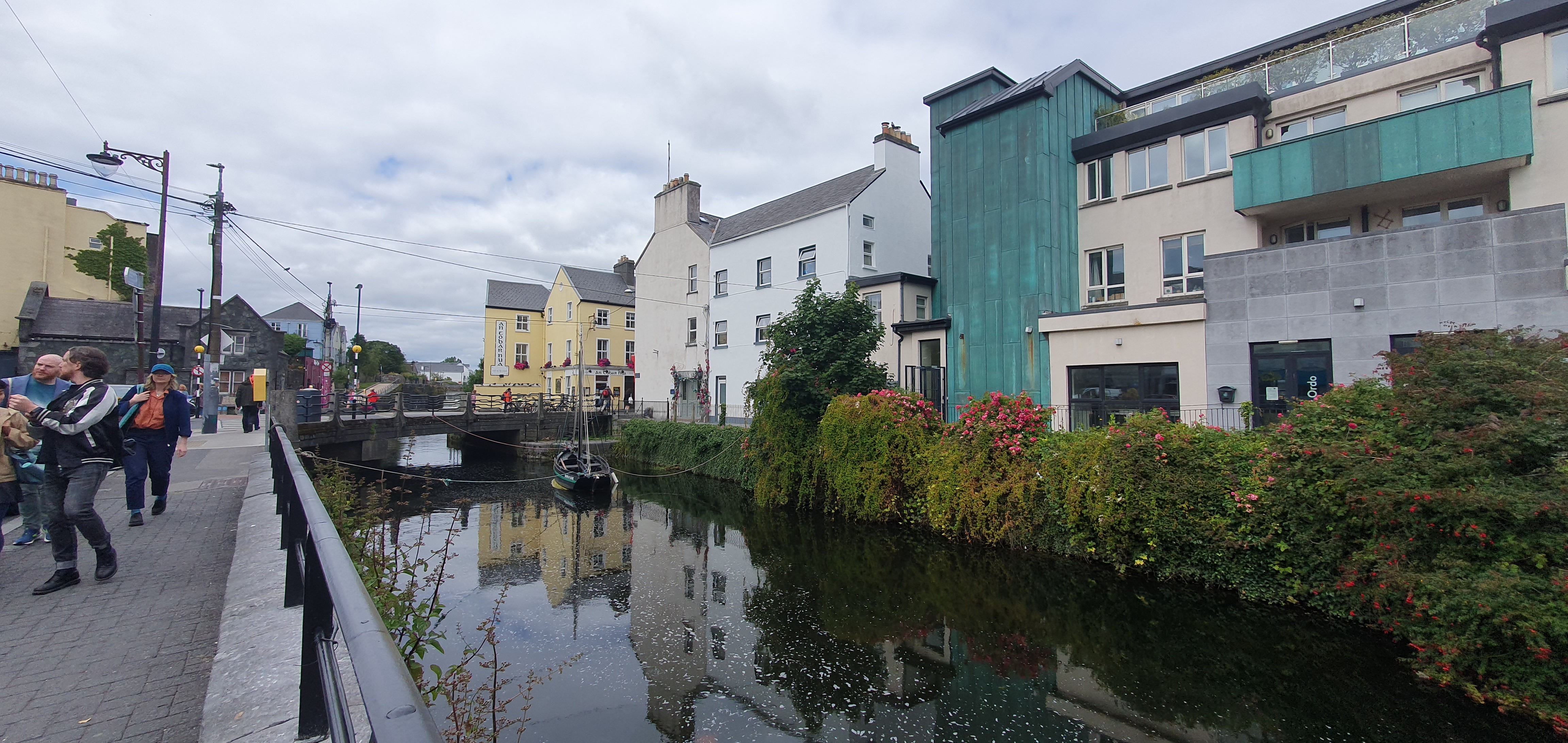 Wandering around, I noticed several jobs advertised and took pictures so I could apply for them later. I strolled along the Long Walk to the Spanish Arch, over the Wolf Tone Bridge to the West End and the Claddagh waterfront. I spotted a seal swimming in the River Corrib, and a silent disco walking tour dancing their way through the streets.