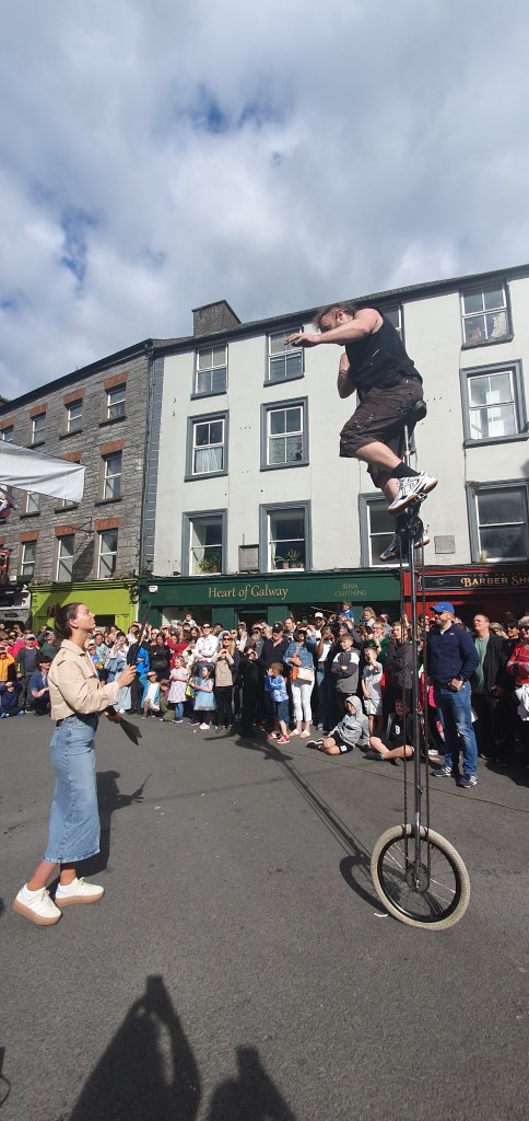On Saturday I ventured back into the city centre, where the International Arts Festival was in full swing. There were thousands of people in the winding cobbled streets, including musicians (including Australian Tim Scanlan), circus performers flying high on a trapeze strung up in Eyre Square, street performers juggling firesticks and knives while peddling a unicycle, and tarot card readers spread out on the sidewalk. No wonder there had been no available accommodation.