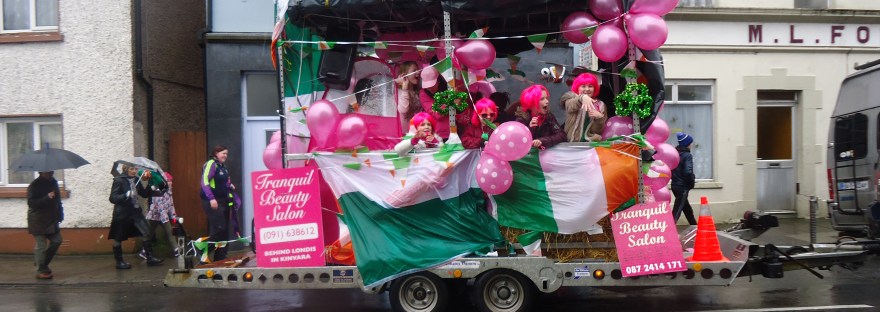 Trucks and tractors queued at the top of Main Street, and the parade jolted into motion just after 1pm. Farmers had decorated their tractors with green, orange and white balloons. A musical band of children and adults played the saxophone, clarinet, fiddle and accordion. The local junior football team skilfully dribbled their balls along the street. There was a very cute little garda marching along, keeping everyone in check!