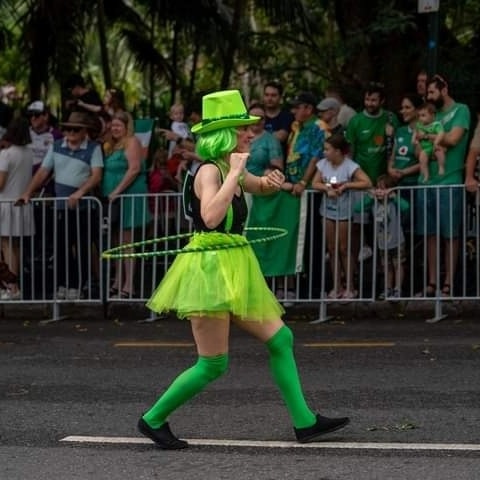 Participating in this parade is a highlight of my experience as a performer. It has been an opportunity to combine my love of hula hooping with my affection for Ireland, and to share both with the audience lining the streets of inner-city Brisbane. It is telling my Irish story.