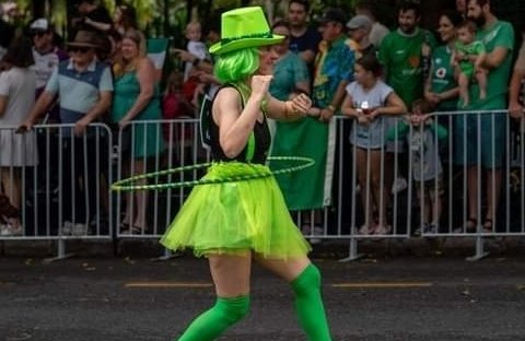 Participating in this parade is a highlight of my experience as a performer. It has been an opportunity to combine my love of hula hooping with my affection for Ireland, and to share both with the audience lining the streets of inner-city Brisbane. It is telling my Irish story.